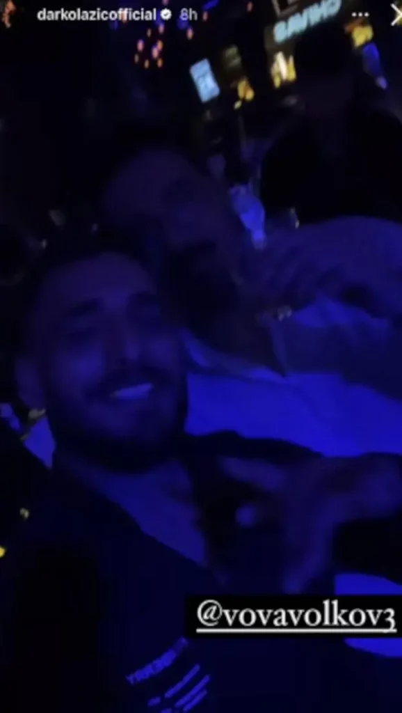 Prvo je podelio snimak iz restorana gde su večerali i pokazao raznovrsnu hranu na njihovom stolu. Zatim je objavio kako igraju i pevaju u jednom klubu. Lazić i Volkov su bili izuzetno veseli, a fudbaler je držao čašu i nazdravljao.