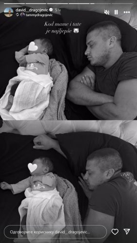 David je u porodilište danas došao sa ogromnim buketom belih ruža i belom kolevkom, a kada je porodica došla kući, on je odmah posvetio svoje vreme sinu.