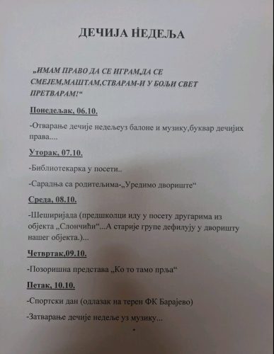 Ovde je sve podređeno deci – njihovoj radosti, igri i osmesima. Vaspitači PU „Poletarac“su se potrudili da svako dete zaista oseti koliko je važno i voljeno. Svaki dan u toku Dečije nedelje je ispunjen pažljivo osmišljenim aktivnostima – od kreativnih radionica i edukativnih igara, do pozorišnih predstava i muzičkih druženja.