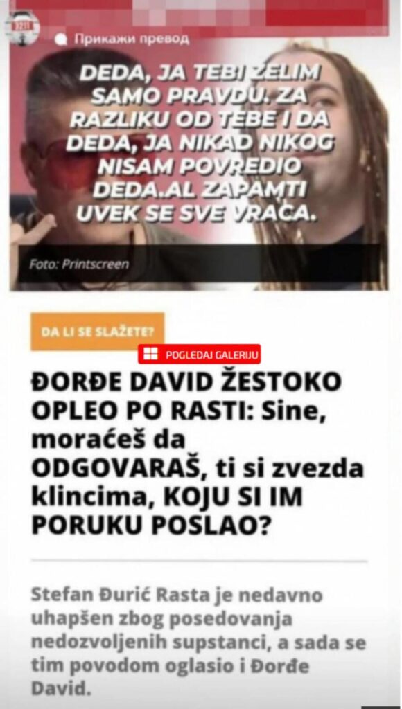 – Deda, ja tebi želim samo pravdu. Za razliku od tebe, ja nikoga nikada nisam povredio, deda. Ali zapamti, uvek se sve vraća – napisao je Rasta na svom Instagram profilu.