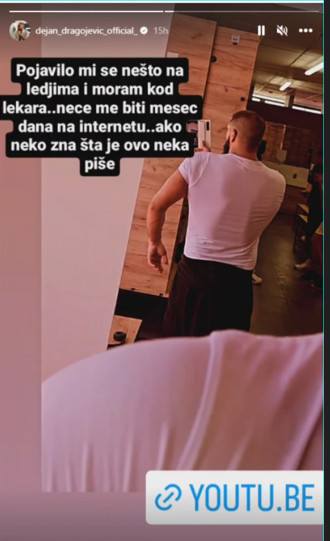 Naime, Dejan je objavio snimak iz teretane, na kom se požalio fanovima da se morao obratiti lekaru i da, zbog onoga što je ugledao na telu, moraće se povući iz javnog života.