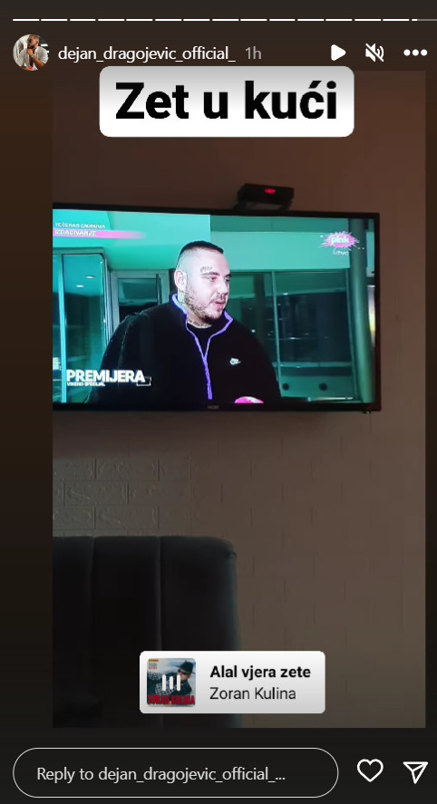 – Zet u kući – napisao je Dejan na svom Instagram storiju.