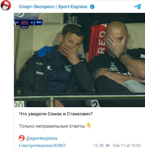 U istom trenutku je žuti karton dobio i Sergej Semak iz Zenita, ali je on otišao za Srbinom, kako bi se solidarisao sa Dekijem.