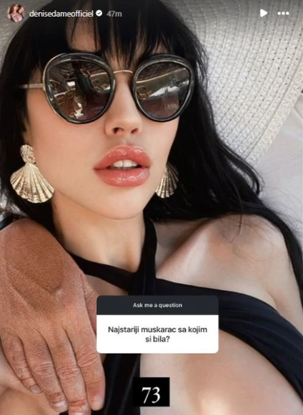 Naime, Deniz Dejm je odgovarala na pitanja pratilaca na Instagramu, a jednog korisnika ove društvene mreže je zanimalo koliko godina je imao njen najstariji partner.