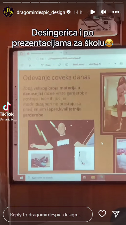 Prema svemu što se može zaključiti, tema koja je obrađivana bila je savremeni način oblačenja, a kao izdvojeni primer bio je upravo Despić, koji je sve ovo ponosno objavio na svom profilu.