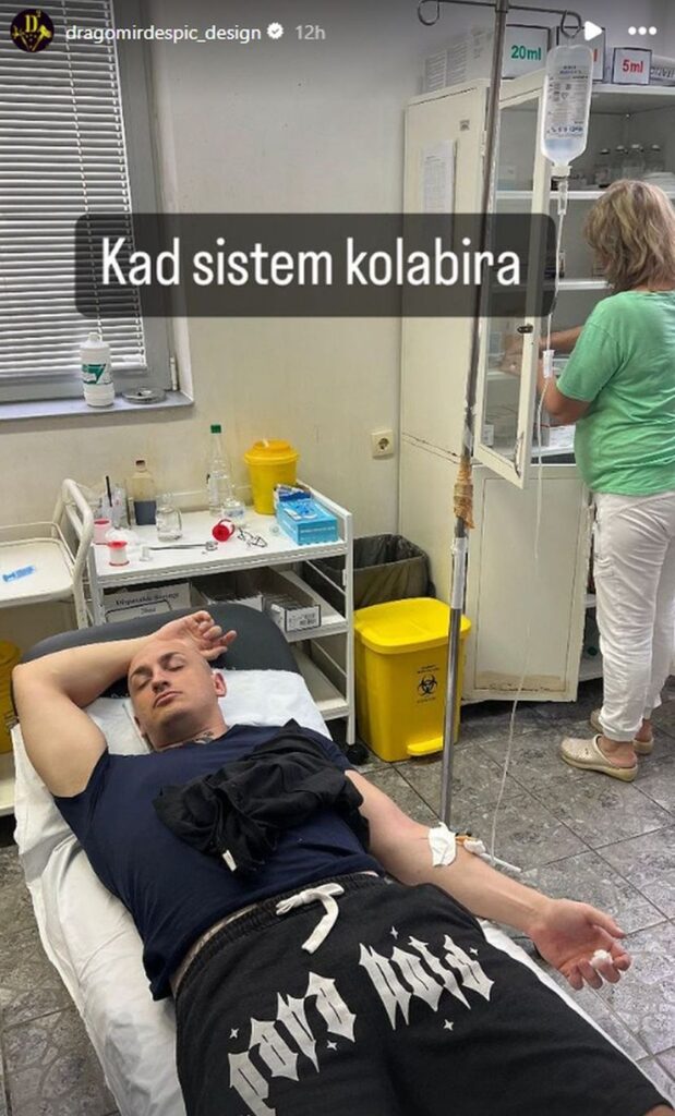 On je podelio fotku iz bolničke postelje na kojoj se vidi kako leži. Despić nije otišao samo na infuziju, već i na EKG, očigledno u želji da prekontroliše rad srca.
