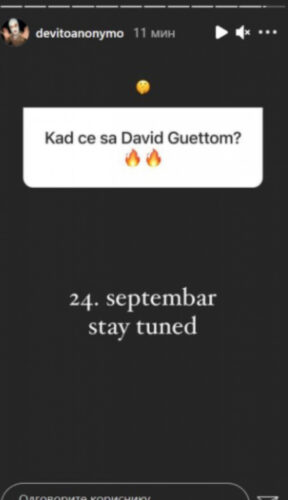 Naime, on je na jednom od svojih storija napisao da do kraja meseca izlazi saradnja sa najpoznatijim svetskim dižejem, tačnije sa David Guettom.