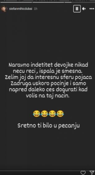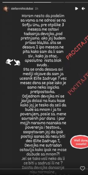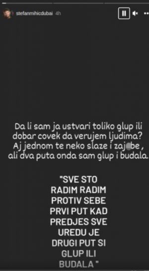 – Da li sam ja ustvari toliko glup ili dobar čovek da verujem ljudima. Aj jedanput te neko slaže i zaj*be, ali dva puta, onda sam glup i budala – napisao je Stefan, a zatim obrazložio ovu misao: