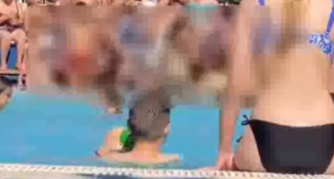 Svakako, na snimku koji je osvanuo na Telegramu vidi se da devojka bez gornjeg dela kupaćeg kostima u bazenu udara pesnicama u glavu ženu koja drži malu devojčicu i scena je vrlo uznemirujuća.