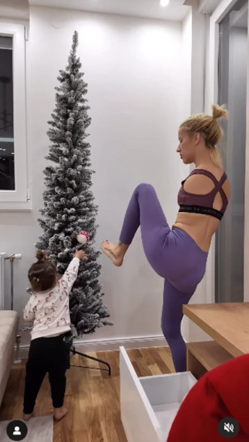 Ona je nogama sastavila jelku, a onda je zajedno sa naslednicom okitila.