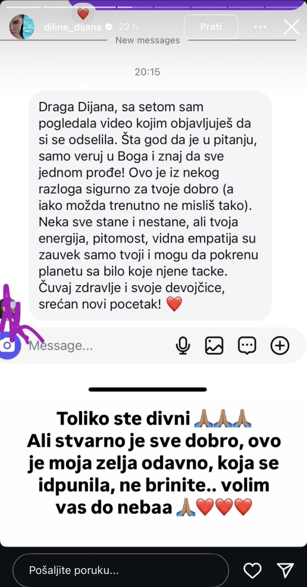 – Hvala ljudi, ali sve je odlično. Hvala do neba na ovoj podršci, ali sve je dobro i tek će biti – napisala je Dijana u opisu.