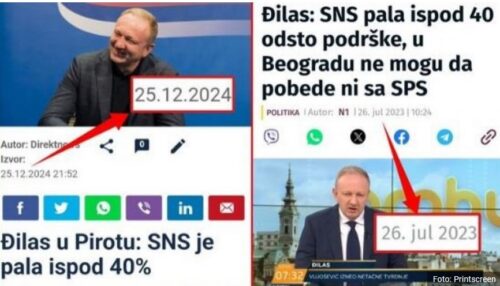 Naime, Đilas je juče ponovo tvrdio da je podrška Srpskoj naprednoj stranci pala ispod 40 procenata. Podsetimo, isto ovo Đilas je tvrdio prošle godine u julu, kada je SNS osvojila čak 47% glasova.