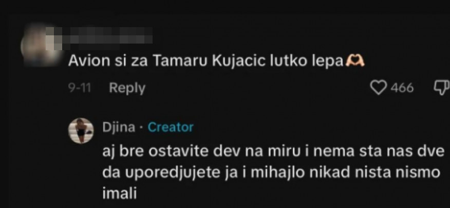 – Avion si za Tamaru Kujačić lutko lepa – glasio je komentar, zbog kojeg je Đina žestoko uzvratila.