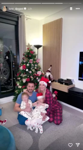 Podelila je fotku na kojoj ispred okićene jelke zagrljena pozira sa Markom i ćerkicama Mijom i Lanom.