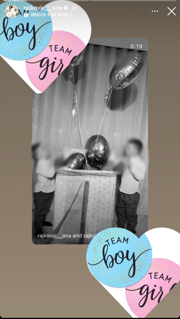 Ana je snimila svoja dva sina kako otvaraju kutiju iz koje izlaze roze baloni. Na taj način su objavili da u njihov dom stiže devojčica.