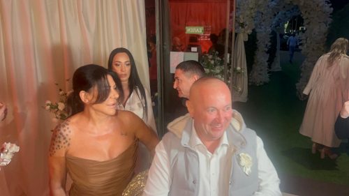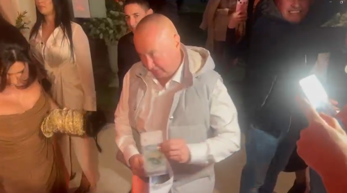 Među prvima je stigao pevač Radiša Trajković Đani, u pratnji supruge Slađane. Njegov dolazak nije prošao nezapaženo, a posebnu pažnju privukao je trenutak kada je tradicionalno kitenje svatova ispratio izdašnom novčanicom.