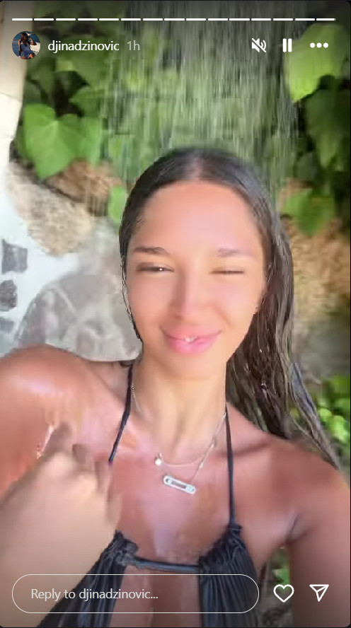 Da nema nameru da prestane da objavljuje izazovne fotografije i snimke, Đina je potvrdila kada se snimala pod tušem na plaži.