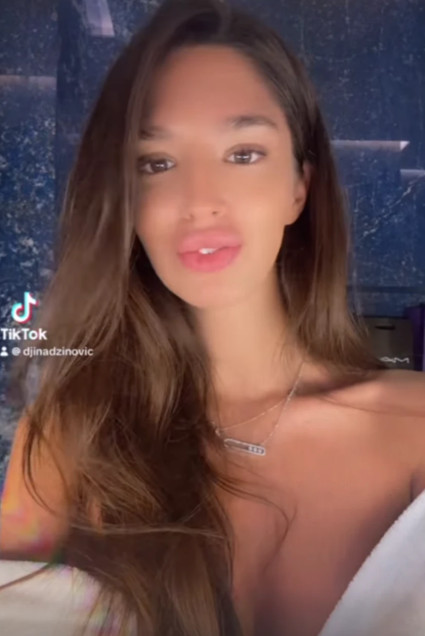 Ćerka Harisa i Meline Džinović se sada snimila u kupatilu, a na sebi je imala samo bademantil koji je u jednom trenutku spustila pa je umalo pokazala previše.