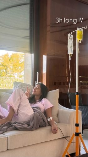 Na objavi se vidi kako je priključena na infuziju, ali Đina nije otkrila razlog, te nije poznato da li je reč o vitaminskom koktelu, uobičajenom u tretmanima za jačanje imuniteta i regeneraciju, ili se radi o zdravstvenom problemu.