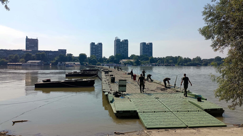 Pripadnici pontonirskih jedinica Vojske Srbije iz sastava Rečne flotile postavili su tokom vikenda pontonski most od Zemunskog keja do Velikog ratnog ostrva, saopštilo je danas Ministarstvo odbrane.