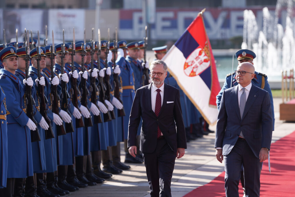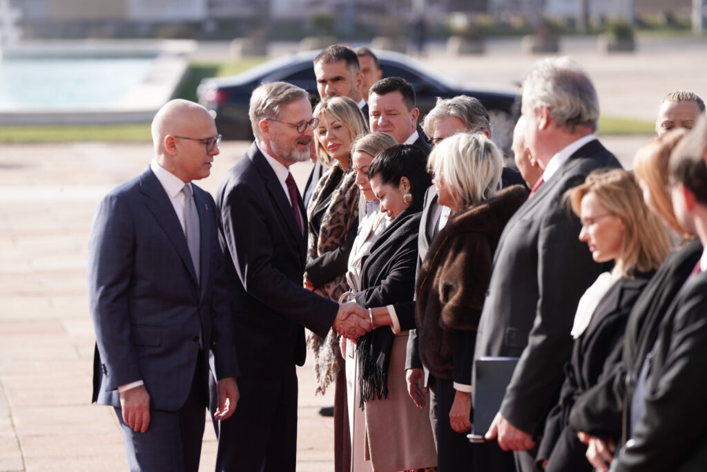 Predsednik Vlade Srbije Miloš Vučević dočekao je ispred Palate „Srbija“ predsednika Vlade Češke Petra Fijalu koji boravi u zvaničnoj poseti Srbiji.