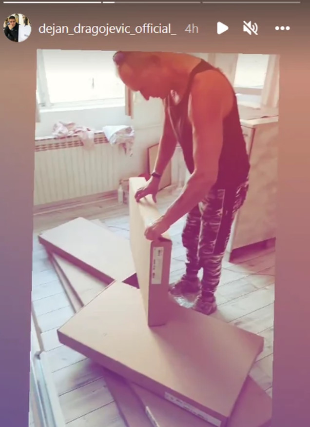 „Evo mi ga pape! Sklapamo garderober! Došao mi je tata da radimo, da sredimo sobu “ – poručio je Dragojević putem Instagrama uz video zapis na kom je moguće videti kako teku radovi.
