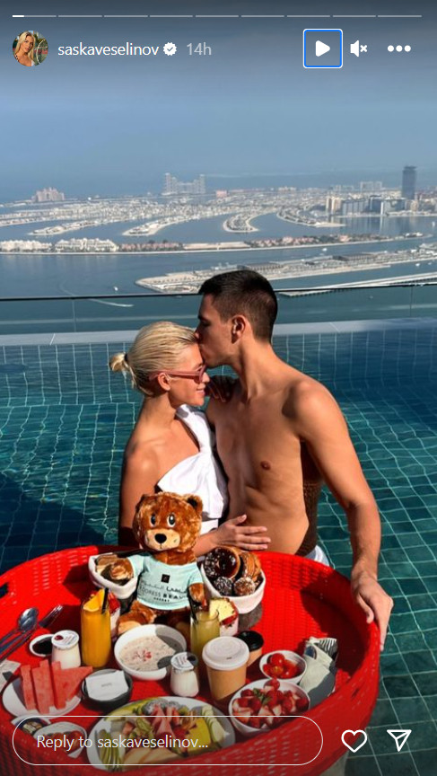 Saška je najpre podelila fotografiju sa krova hotela, a ona i Đorđe su uživali u bazenu uz veliku dasku posluženja.
