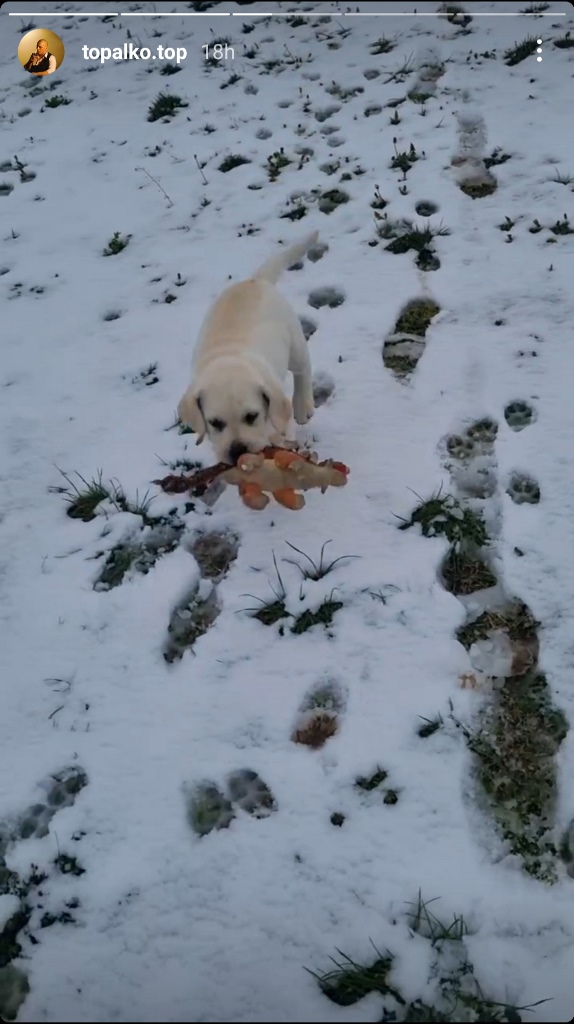 Pevač je najpre pokazao kako mu u igri sa psom ne smetaju ni vremenske neprilike te se sa svojim ljubimcem, koji je još uvek štene, igrao na snegu.Posvetio se radu sa njom kako bi izrasla u poslušnog ljubimca.
