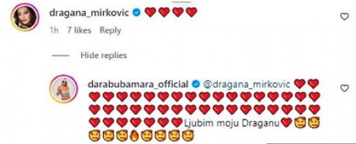 Dragana je ispod najnovijih fotografija Bubamare ostavila nekoliko emotikona srca, a Dara odmah uzvatila:
