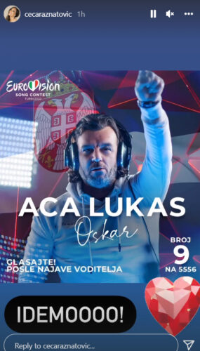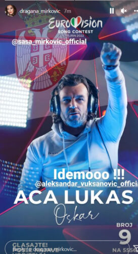 Podsetimo, Aca Lukas sa pesmom „OSKAR“ nastupa pod rednim brojem 9, a za njega možete glasati slanjem SMS poruke 9 na 5556 kad voditelji daju znak da je glasanje počelo!