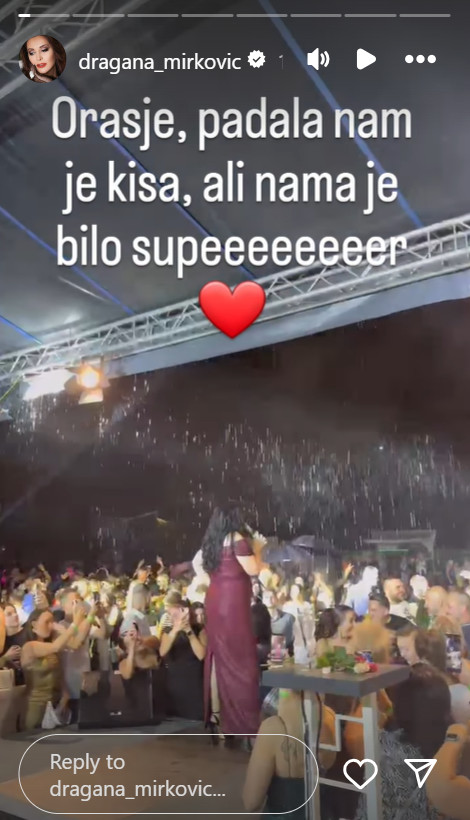 „Orašje, dobro smo pokisli sinoć, ali nam je bilo super! Pa sam sišla i ja da kisnem! Kakvo ludilo!“, Dragana je opisivala u storijima.