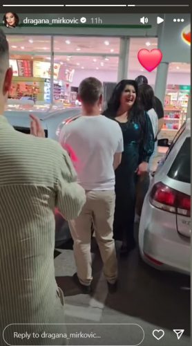 Dragana Mirković se posle održanog koncerta uputila ka jednoj benzinskoj pumpi, gde su je sačekali fanovi. Tu su bili i trubači, a atmosfera je bila na nivou.