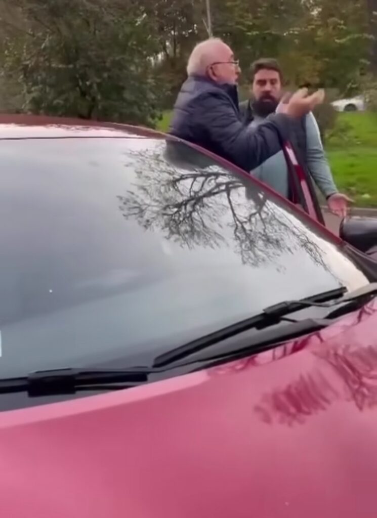 „Ovo nije za pešake, ovo je za automobile, ma neću da se pomerim dok milicija ne dođe, jer ona nema pravo to da radi“, rekao je besni stariji muškarac koji je želeo da se parkira ali je devojka stala nasred parking prostora da bi ga sačuvala zbog svog prijatelja.