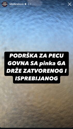 – Podrška za Pecu, g*vna sa televizije ga drže zatvorenog i isprebijanog -napisao je Bilal.