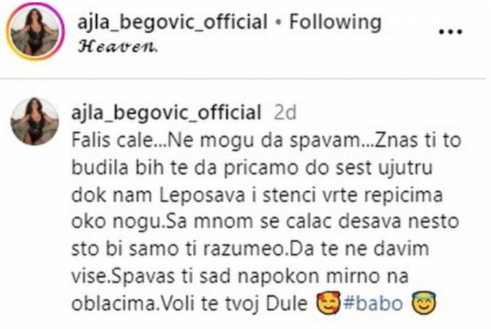 Photo: Printscreen Instagram/ajla_begovic_official