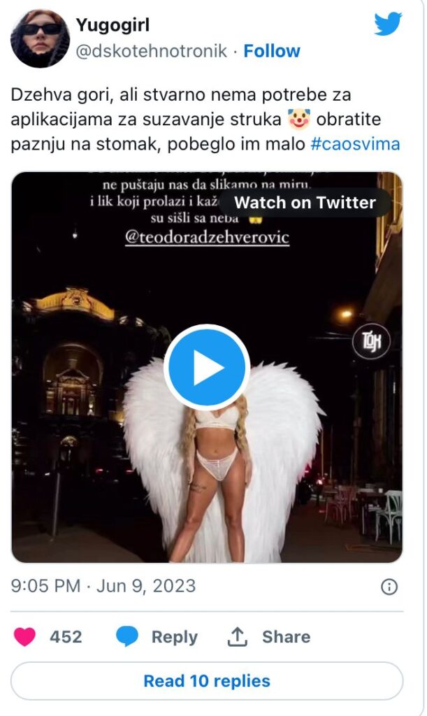 Džehva se ponovo našla na udaru komentara jer su tviteraši primetili da je svoj stuk i stomak suzila uz pomoć „pametnih“ aplikacija za ulepšavanje, ali pošto se radilo u video snimku, to jako čudno izgleda i promena je i više nego očigledna.