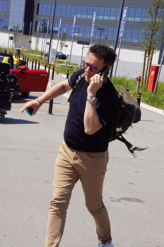 Nosio je ranac na leđima i kesu za poklon. Pričao je telefonom u hodu, a onda je gotovo odjurio do automobila, ne okrećući se iza.