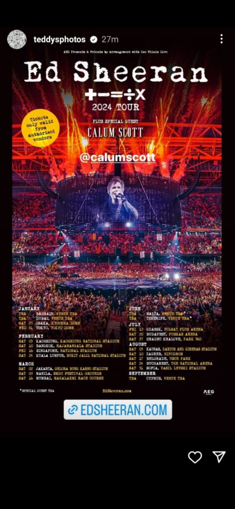 On je objavio spisak svih gradova u kojima će biti, a među njima je i Beograd, koji će se naći u sklopu „+ – = ÷ x Mathematics“ turneje.