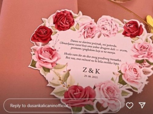 „Danas ne slavimo početak već potvrdu, obnavljamo zavet koji smo jedno drugom dali – srcem, pesmom, pogledom koji se ne menja. Hvala vam što ste deo ovog posebnog trenutka. Bez vas, ova večnost ne bi bila ovoliko lepa“, poručili su Zorica i Kemiš svojim gostima.