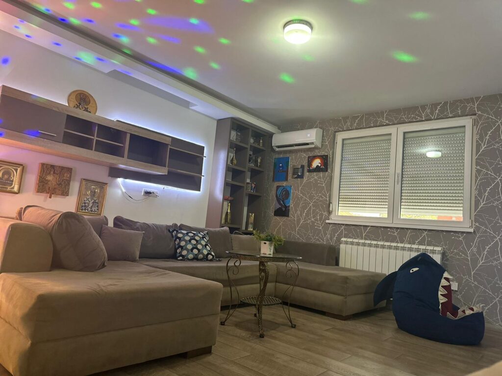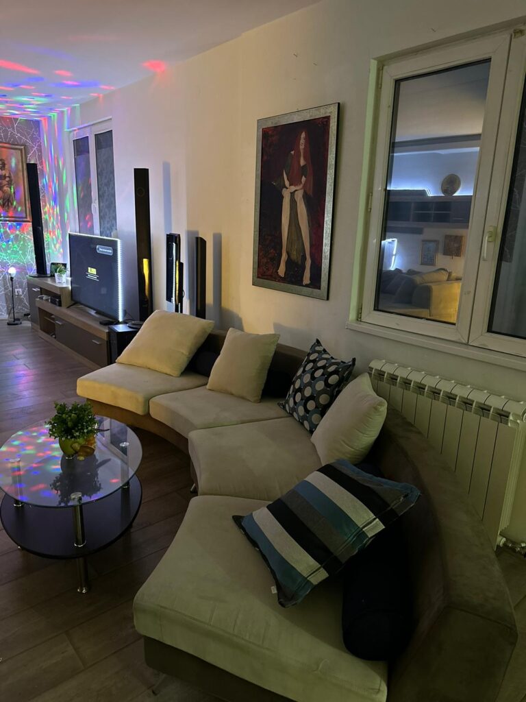 Kako često voli da okupi porodicu i prijatelje, Silvia je u prostrani dnevni boravak ubacila i jedan ovalni trosed, koji je idealan za tračarenje sa sestrom Marinelom i majkom Slađom Delibašić. A ceo prostor upotpunila je šarenim laserima.