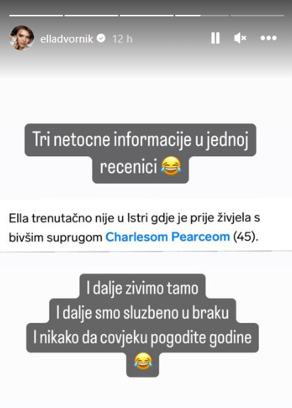 Naime, njen dolazak u Zagreb podstakao je medijske natpise da više ne živi u Istri i da joj je Čarls bivši suprug, zbog čega se ona oglasila.