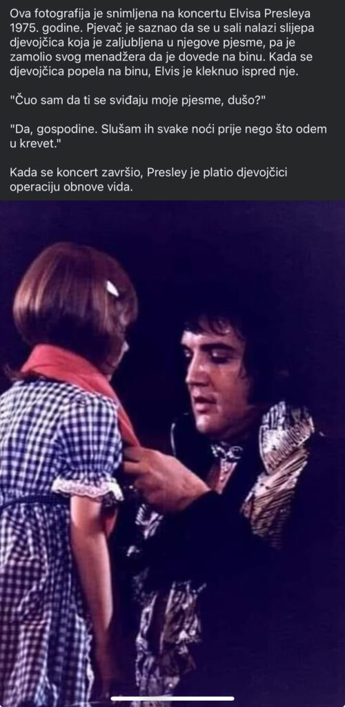 ELVIS PRISLI JE KLEKNUO ISPRED SLEPE DEVOJČICE NA BINI: Iza ove fotografije krije se srcecepajuća priča o legendi i čoveku OGROMNOG SRCA