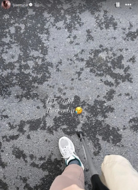 Ona je na svom Instagram profilu podelila fotografiju na kojoj se vidi da joj je noga povređena, te da otežano hoda i to uz pomoć štaka.