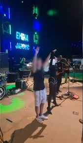 U jednom trenutku je sa majkom podigao ruke uz pesmu Dina Merlina „Ja potpuno trijezan umirem“.