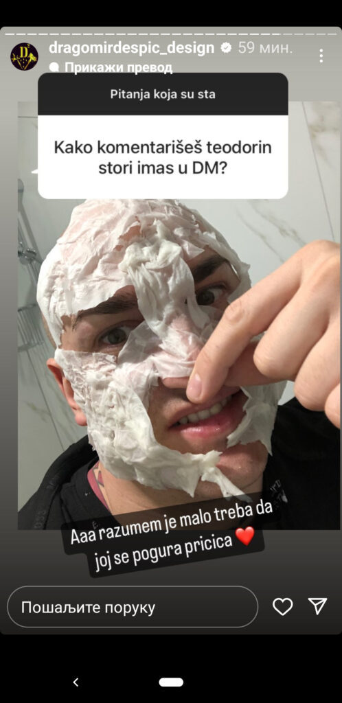 Početkom ove nedelje na instagram priči repera Dragomira Despića Desingerice osvanuo je neobičan post, na kom je fotomontaža njega i Teodore, dok je on hrani mlekom iz flašice, a tu vest možete pročitati OVDE.