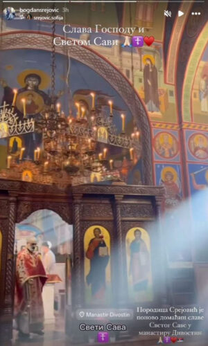 – Porodica Srejović je ponovo domaćin slave Svetog Save u manastiru Divostin. Slava Gospodu i Svetom Savi – napisao je Bogdan uz snimak porodice.