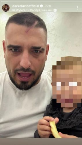 Na slici se jasno vidi ožiljak na njegovoj glavi, kao i deo obrijane kose, što je zabrinulo mnoge njegove pratioce.