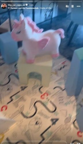 Prostor su ulepšale Leonine fotografije od rođenja, pa sve do danas, a Filip Car nije odoleo te je fotografiju sa ćerkom podelio na društvenim mrežama.