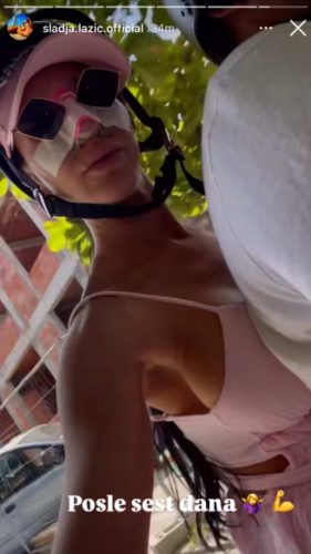 Rijaliti učesnica Slađa Lazić, poznatija kao Slađa Poršelina, šest dana nakon estetskih zahvata objavila je fotografiju na kojoj se vidi da joj je lice i dalje u zavojima i flasterima.