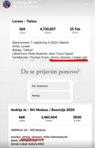 Dok cela Evropa priča o njoj, jutjuber i influenser Andrija Jović, poznatiji kao Andrija Jo, otkrio je zanimljivu činjenicu. Isti čovek koji je komponovao ovogodišnju pobedničku pesmu, napisao je i Andrijinu pesmu „Oči meduze“, sa kojom se i sam bio u trci za „Evroviziju“, ali se ipak nije kvalifikovao u dalji krug.